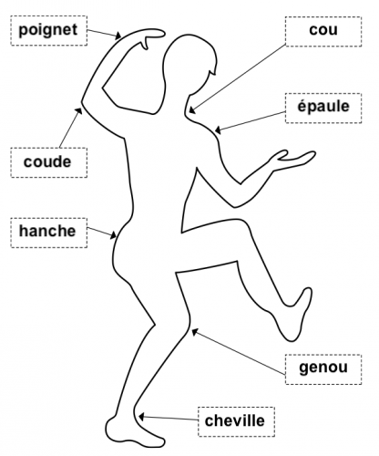 A ce moment on énumère le nom de toutes les articulations. Les élèves en oublient forcément: toutes celles du doigt, les hanches, les orteils… Certains ignorent parfois les noms.